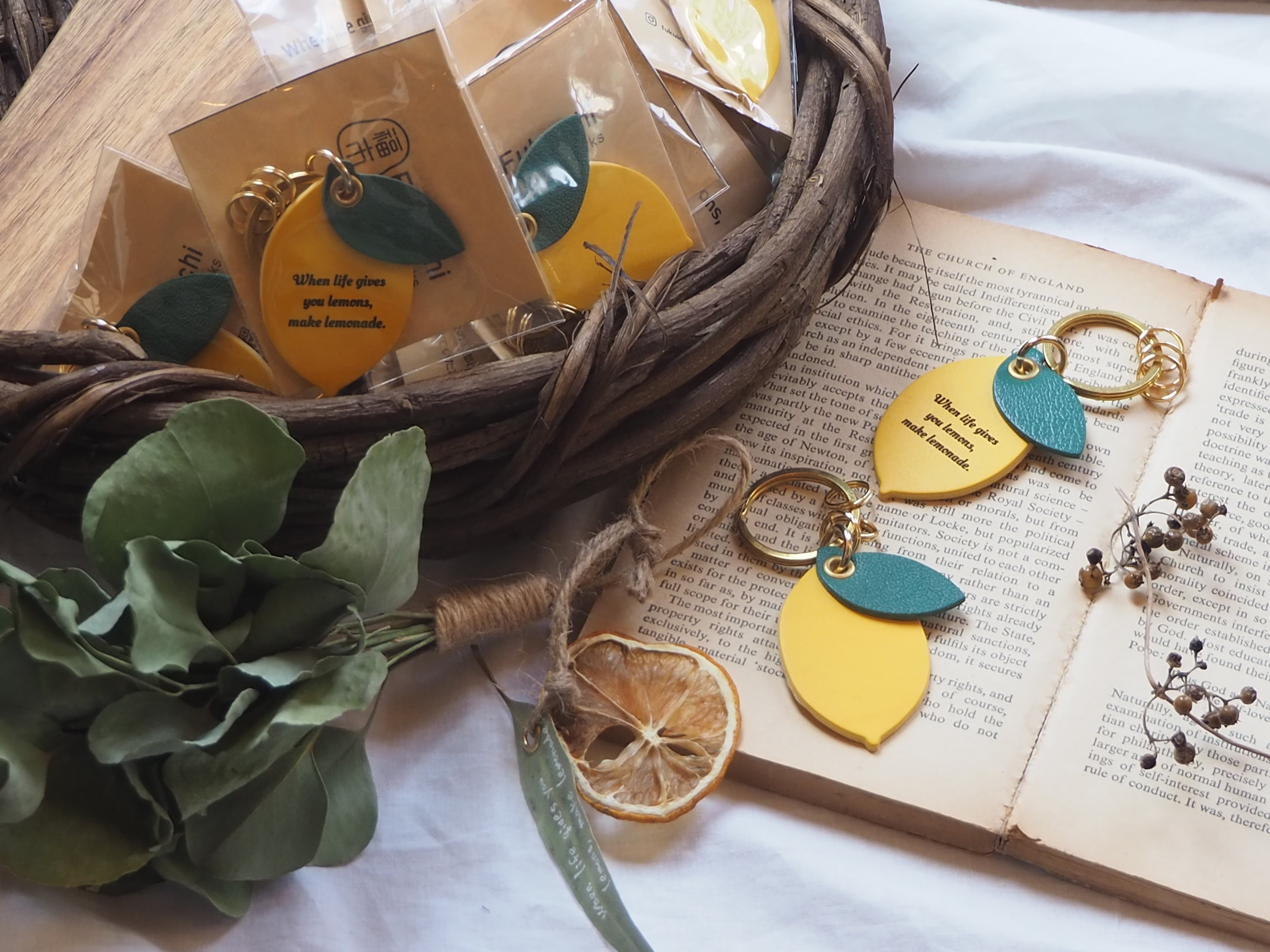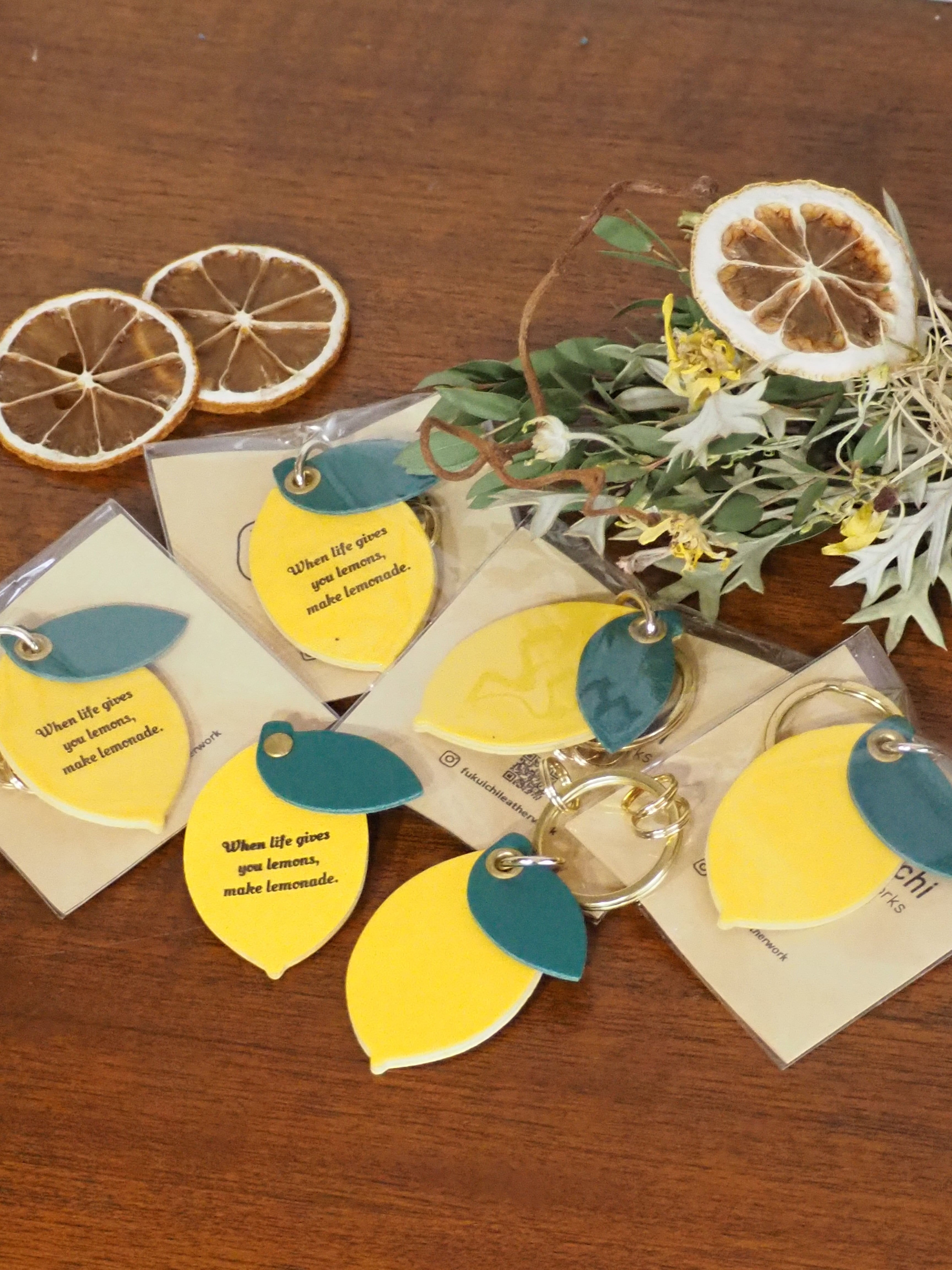 そんな前向きなメッセージを込めた、レモンのレザーキーホルダーです。