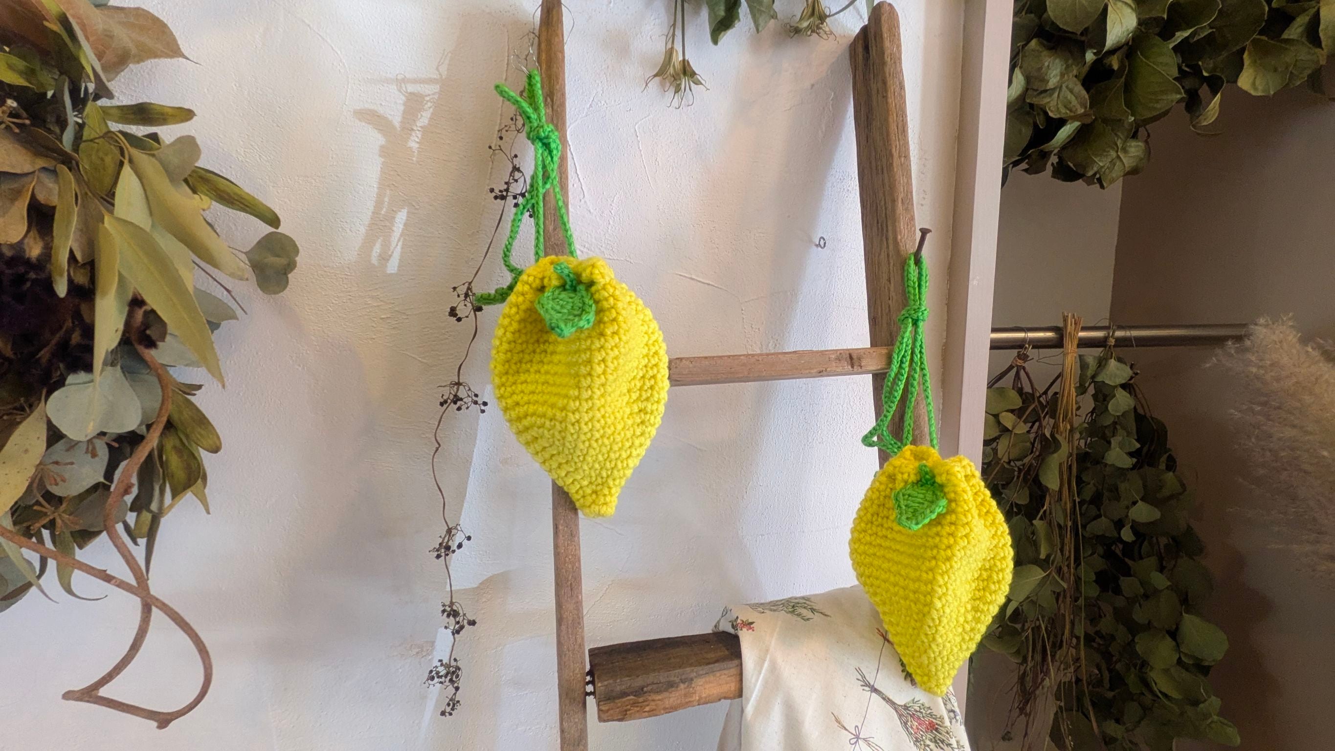 巾着のようにギュッとしめると、立体感のあるかわいいレモンの形になります。